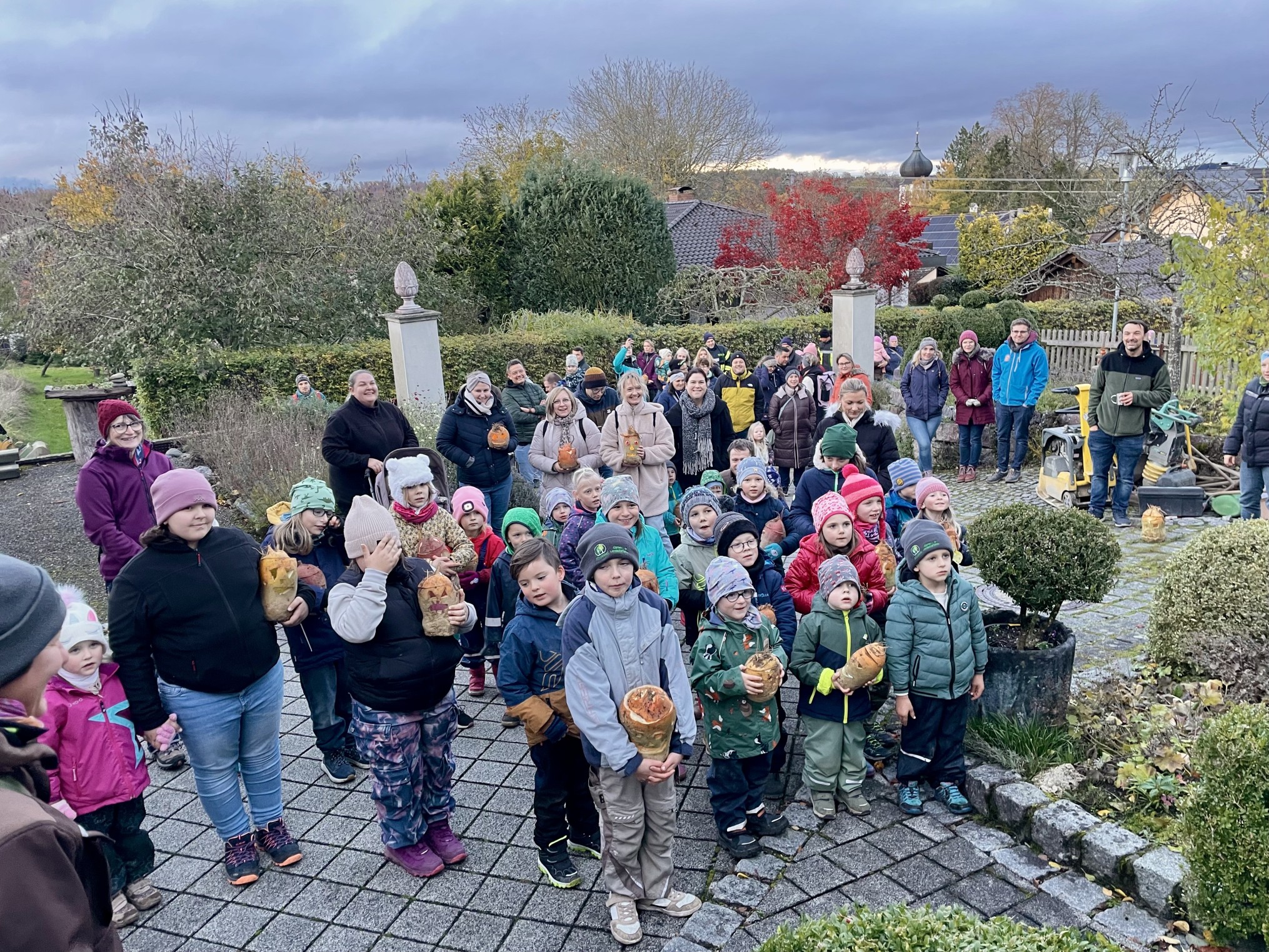 Dorf mit leuchtenden Rüben und strahlenden Kindern. Begleitet wurden sie