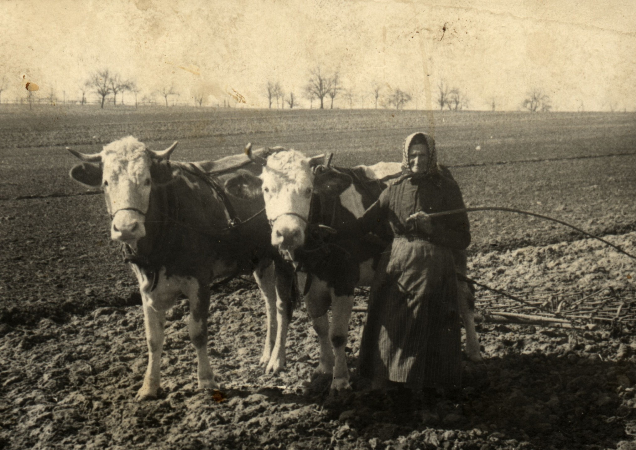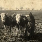 Bis zum Einzug der Technik war die Landwirtschaft von harter menschlicher und tierischer Arbeit geprägt: Unser Bild zeigt ein Kuhgespann mit Bäuerin bei der Feldarbeit (Vorlage: Bildungswerk Inzigkofen)